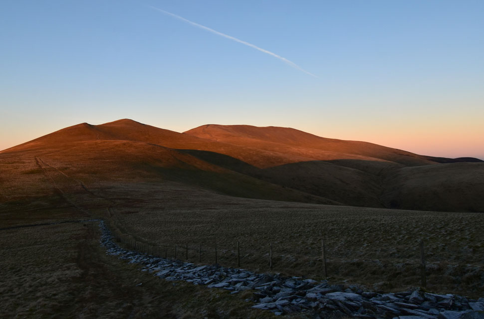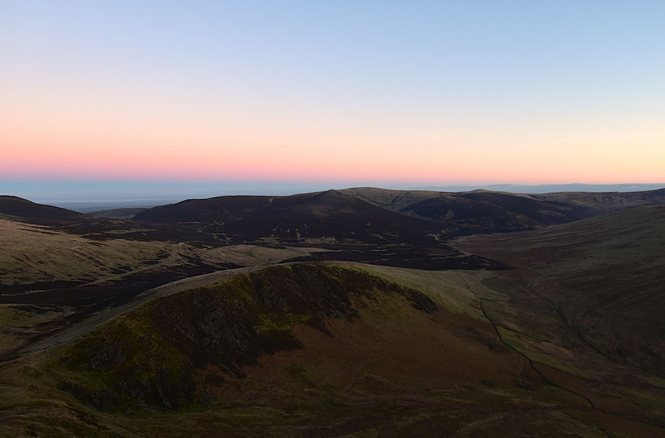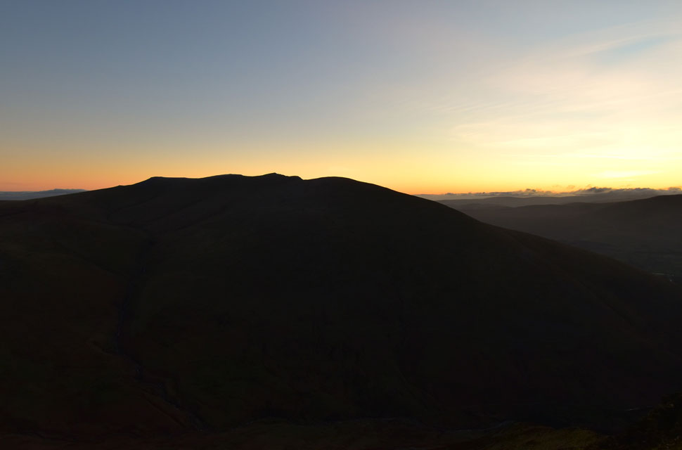 | Pre-dawn views towards Clough Head, The Dodds and the Helvellyn range from the Cumbrian Way 7:39am 2°C |