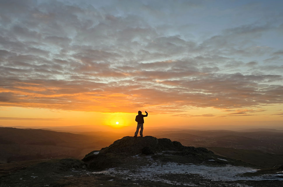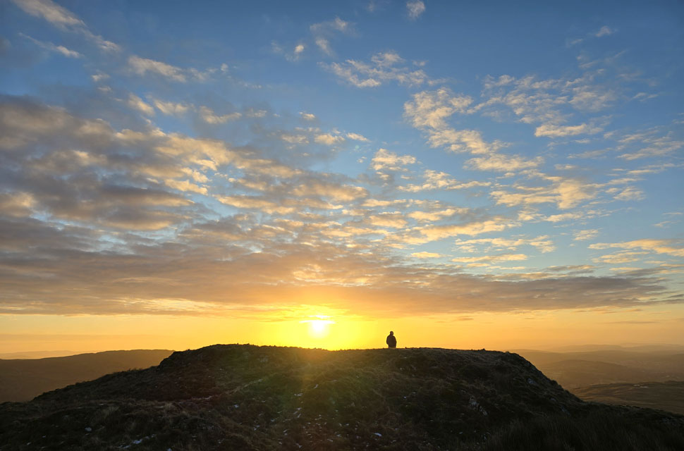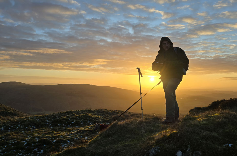 | We had been joined by a young chap who after a 'morning' had perched himself atop the summit rock soon followed by a couple, then two solo walkers all here to catch the sunrise. |
