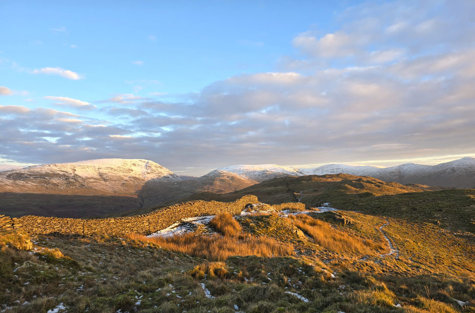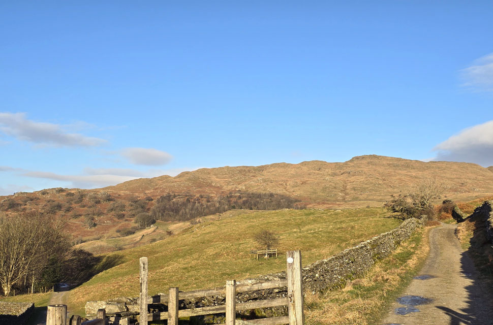| Views towards Wansfell Pike from the Hundreds Road seen right. |