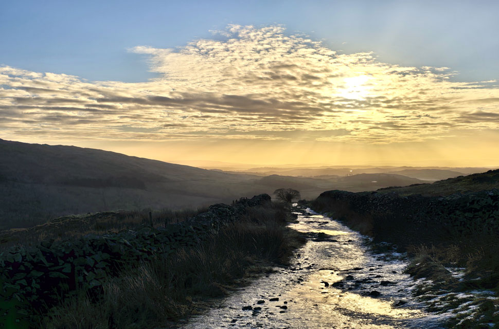 | Despite the light descending, Nanny Lane wasn't without a few slips and slides, two of which came from myself after taking this very photo. "I thought you were a goner," David laughed. "Bloody hell," I replied. "I bet Torvel and Dean would have been proud of that recovery." I laughed back. |