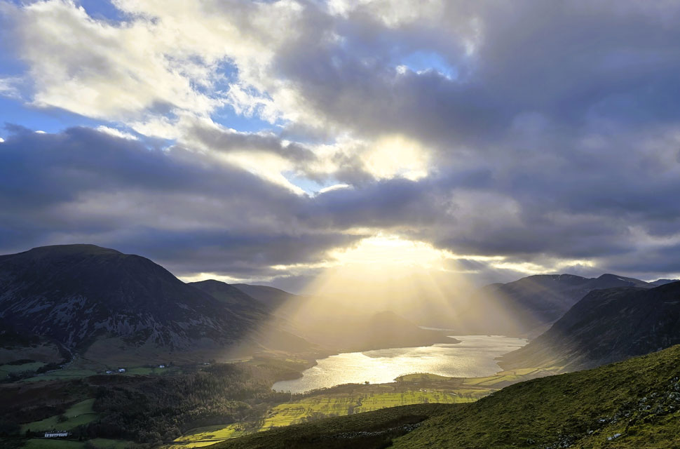 | Burst of light over Crummock Water from Loweswater Fell. |