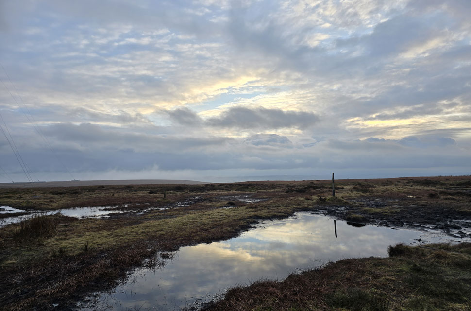 | There's still no access through the transmitter station, and over the last few months folks, including myself, have been cutting across the moorland in an effort to return to Rotary Way. It's quite a nice walk, but as you can imagine, it's very wet underfoot, and with just fifteen minutes before sunset, it's not a place you'd want to be without a head torch. |