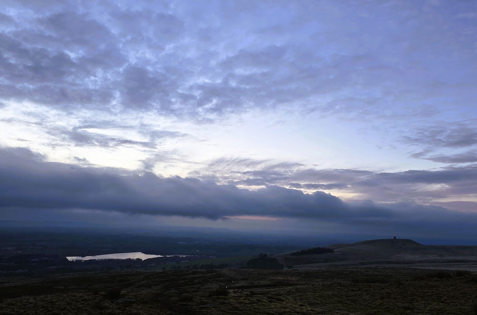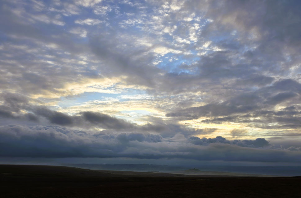 | Layers and laters of cloud above Rivington Pike. |