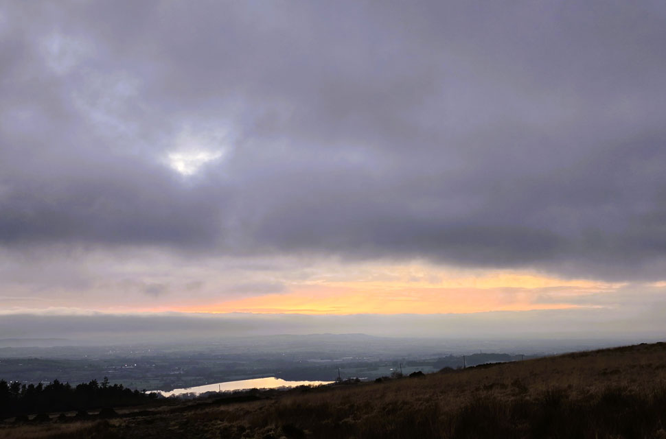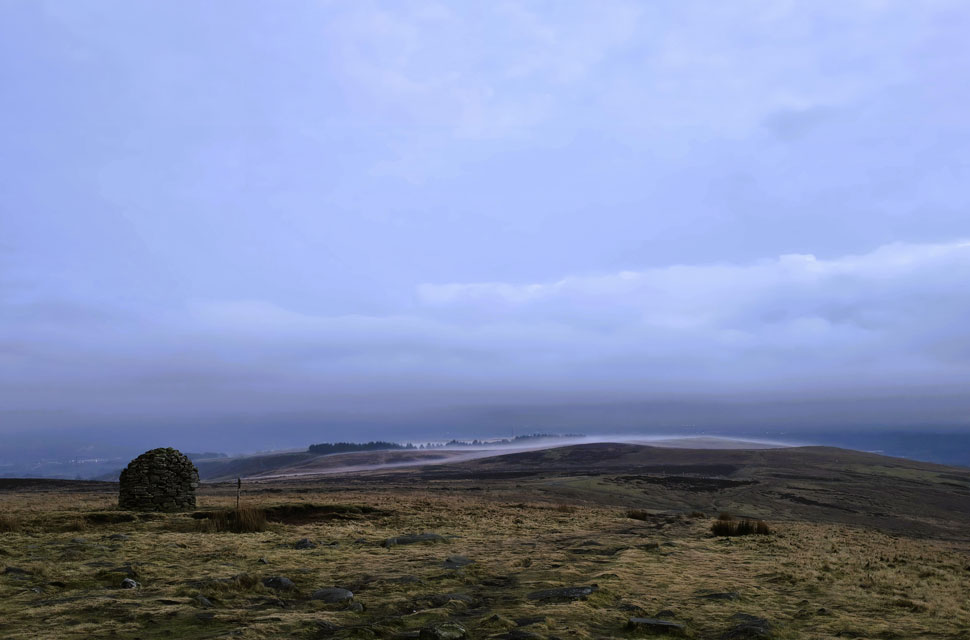 | If you look closely you can see a thin layer of mist forming over the moorland. |