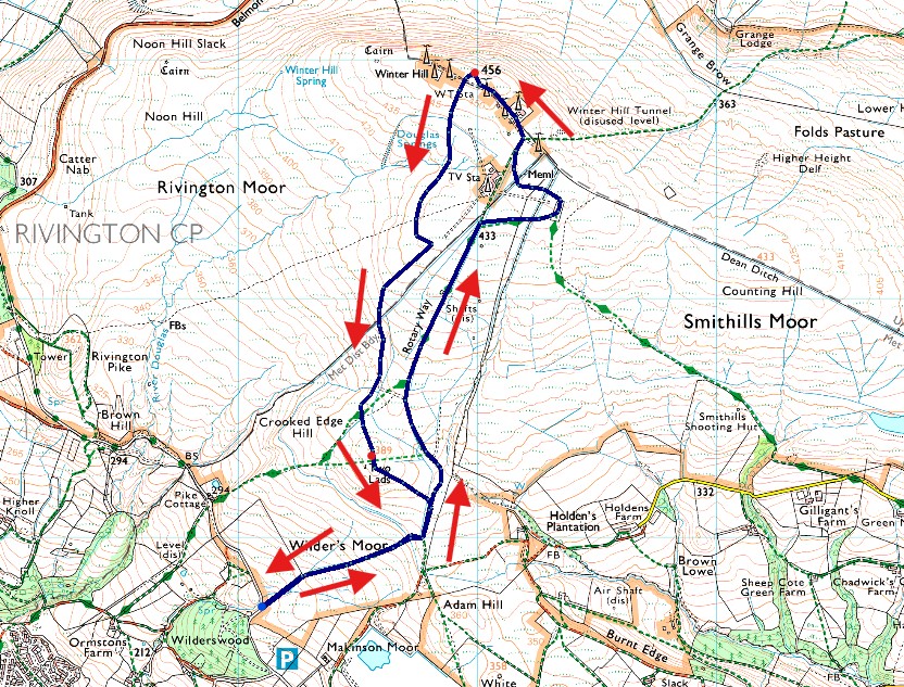 Wilderswood - Rotary Way - Winter Hill - Rotary Way - New Path Through Rivington Moor - Two Lads - Wilderswood |
