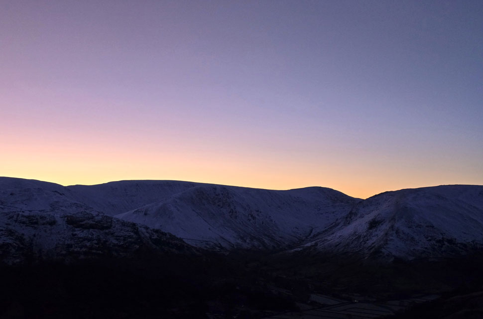 | Dawn views towards Caudale Moor, Gray Crag, Thornthwaite Crag, Red Screes and Middle Dodd from Arnison Crag summit. |