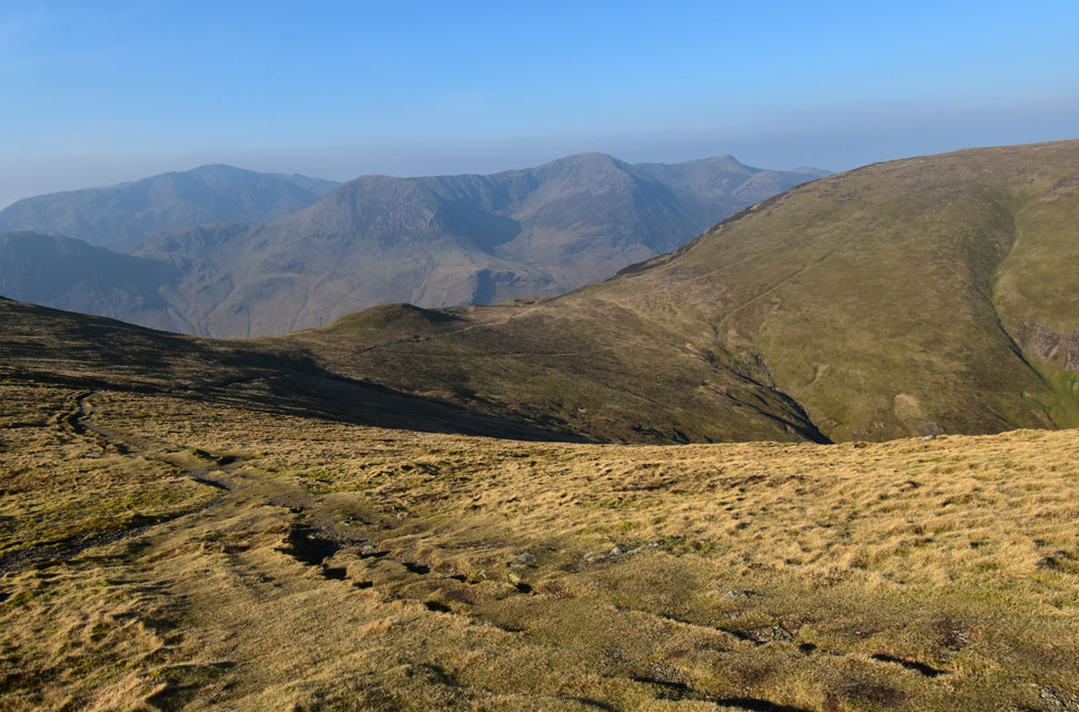 | Looking back over Littledale Edge towards Robinson, the High Stile Ridge and Pillar. |