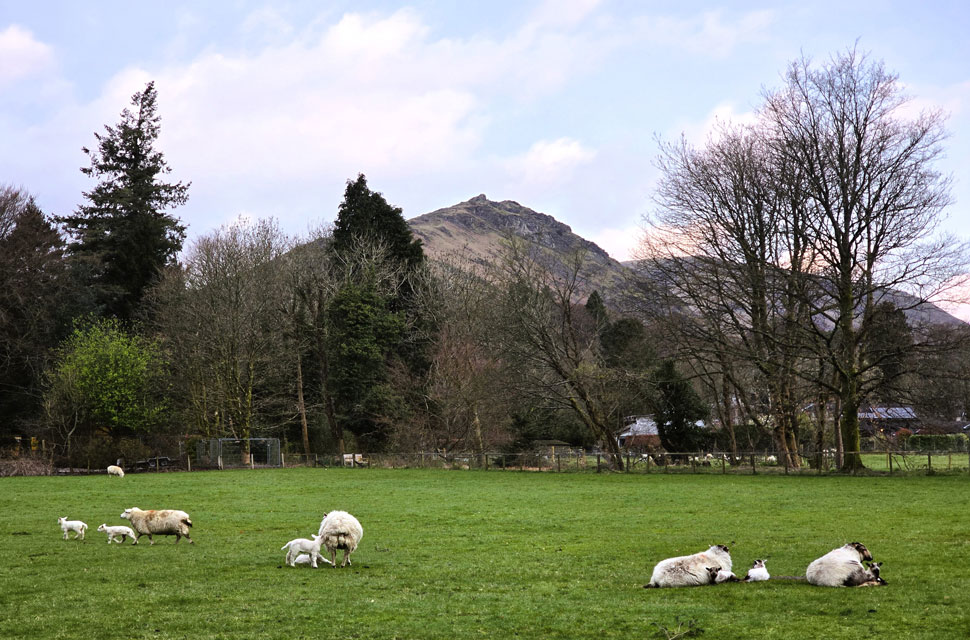 | For the first Bank Holiday of the year we were treated to a sleepy Grasmere. We passed through the village via Stock Lane and out onto Red Bank Road, where the fields on either side were alive with the sound of bleating lambs. In one of the fields a farmer was hand feeding them from a bucket, a quiet scene that matched the start to our walk. From Red Bank Road we turned right and joined the walled incline towards Kelbarrow. |
