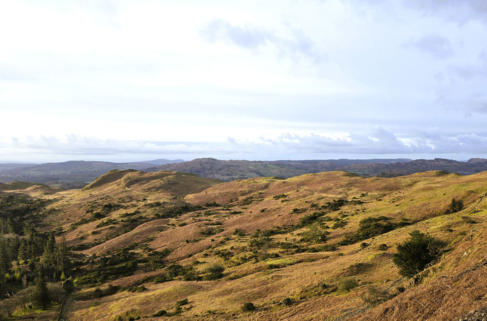| We swapped the tarmac lane for the steep fellside beside Intake Wood, the slope so steep in places it dropped out of sight, The good news was that the ascent was over relatively quickly. We'd only seen one fell runner on Dow Bank, the couple with the Westie, and another runner descending during our Loughrigg ascent and somehow we even managed to have the ever popular summit to ourselves.