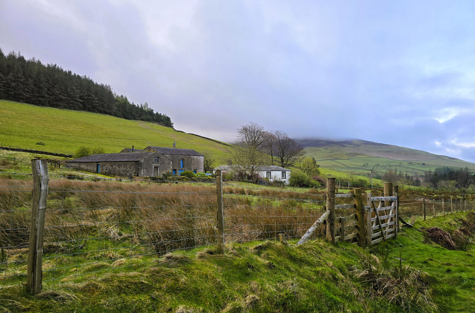 | Looking back on Dawling How Farm with Swinside in the distance 11°C 6:55am |