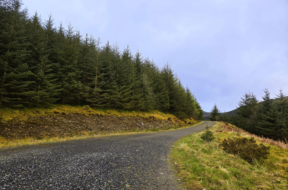 | Turning right onto the forestry track. |